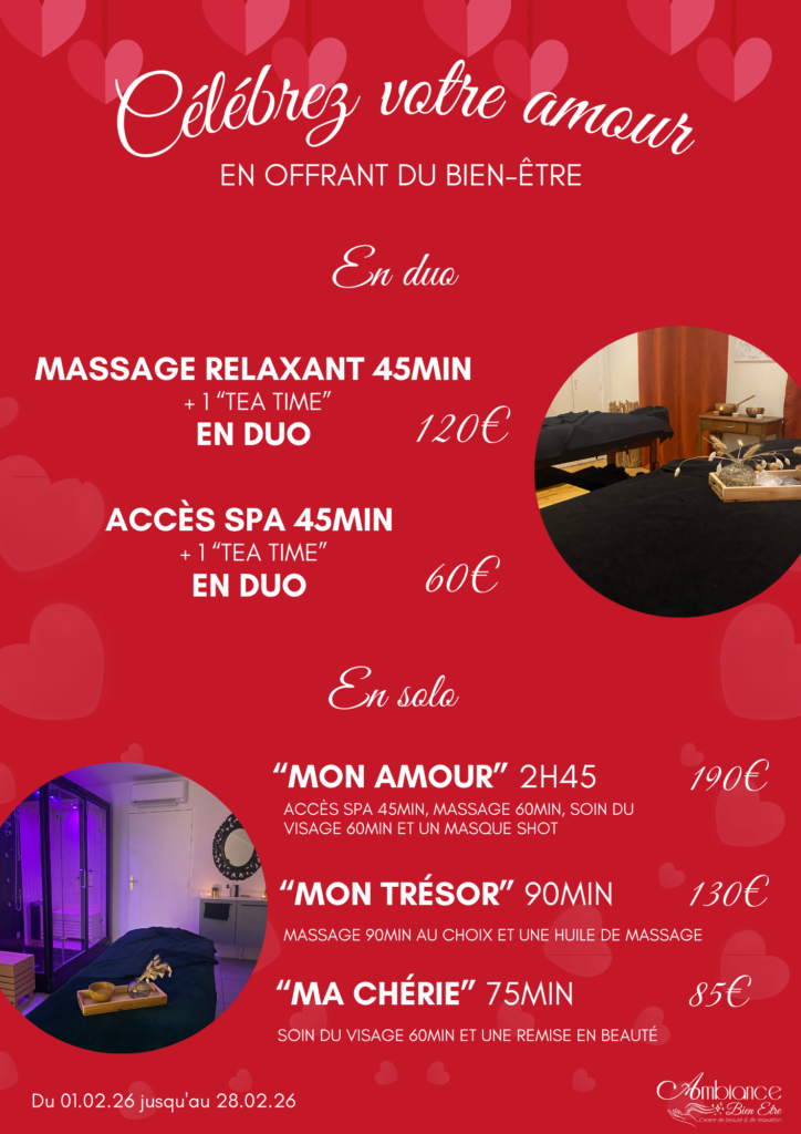 À l’occasion de la Saint-Valentin, votre institut vous invite à vivre un moment d’exception à deux.